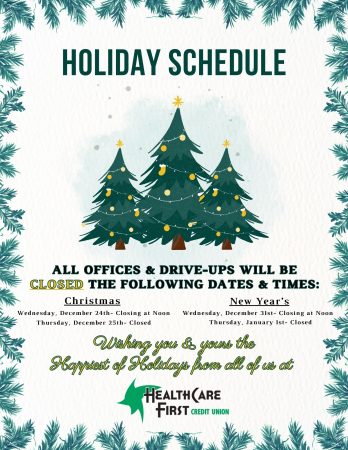 All of our offices and drive-ups will be closing at 12pm on December 24th and remain closed on December 25th for Christmas. They will close again at 12pm on December 31st and remain closed on January 1st for New Year's…